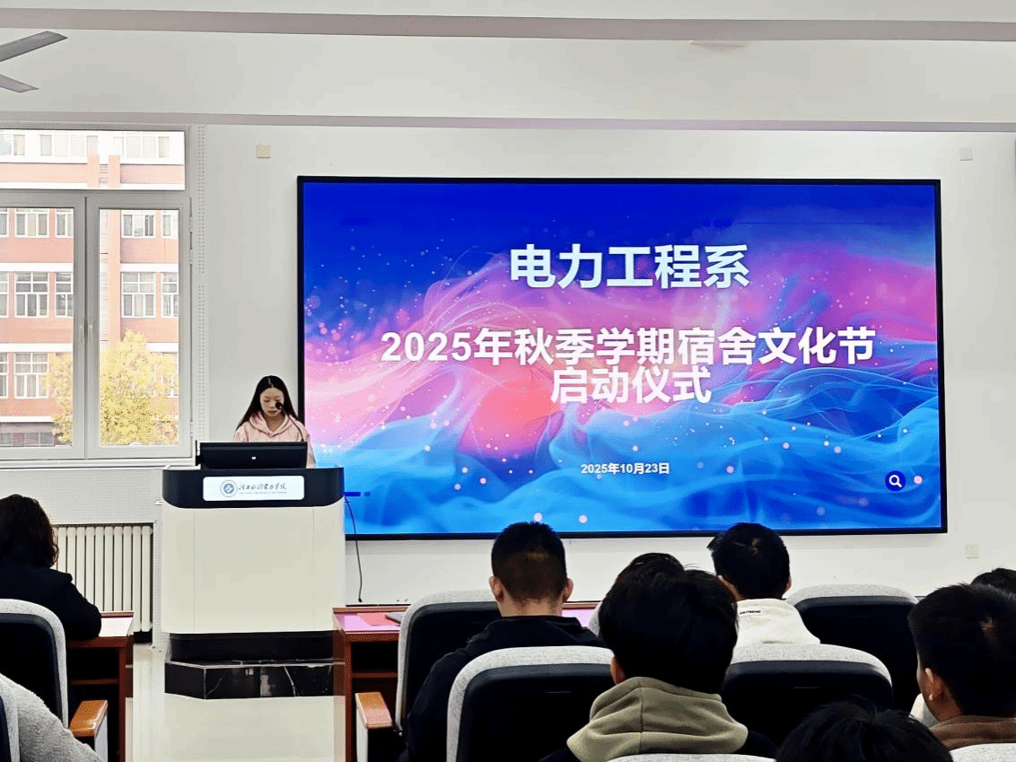 为深入推进文明校园和“一站式”社区建设,创建安全、整洁、和谐、向上的宿舍氛围,丰富学生校园文化生活,培养学生集体主义观念和良好生活习惯。10月23日,电力工程系于求是楼C205安澜学术讲堂举行2025年秋季学期宿舍文化节启动仪式,系党委书记陈元才、系党委副书记宋晓晨、全体辅导员以及2023-2025级各班班长、团支书、宿舍长、党员、积极分子等学生代表近200人参加活动。启动仪式由系党委副书记宋晓晨主持。