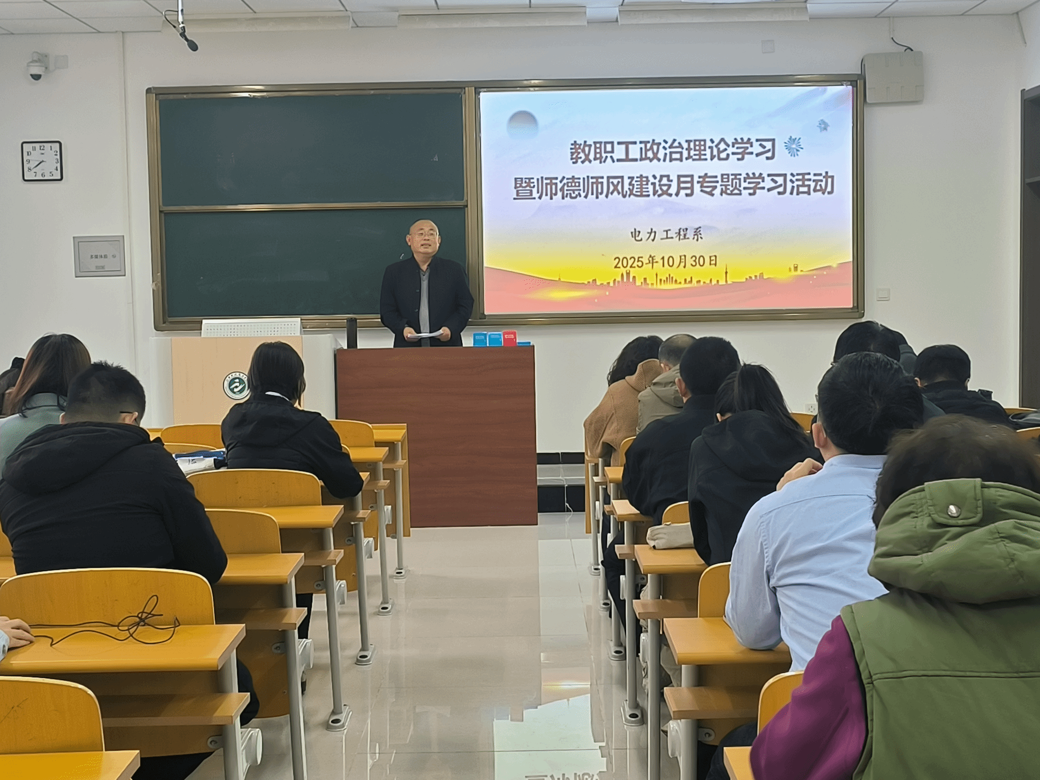 为深入贯彻落实高校教师职业行为规范要求,深刻领会中央重要会议精神,10月30日下午,电力工程系组织全体教职工开展政治理论学习暨师德师风建设月专题学习活动,会议由电力工程系党委书记陈元才主持,全体教职工参加。