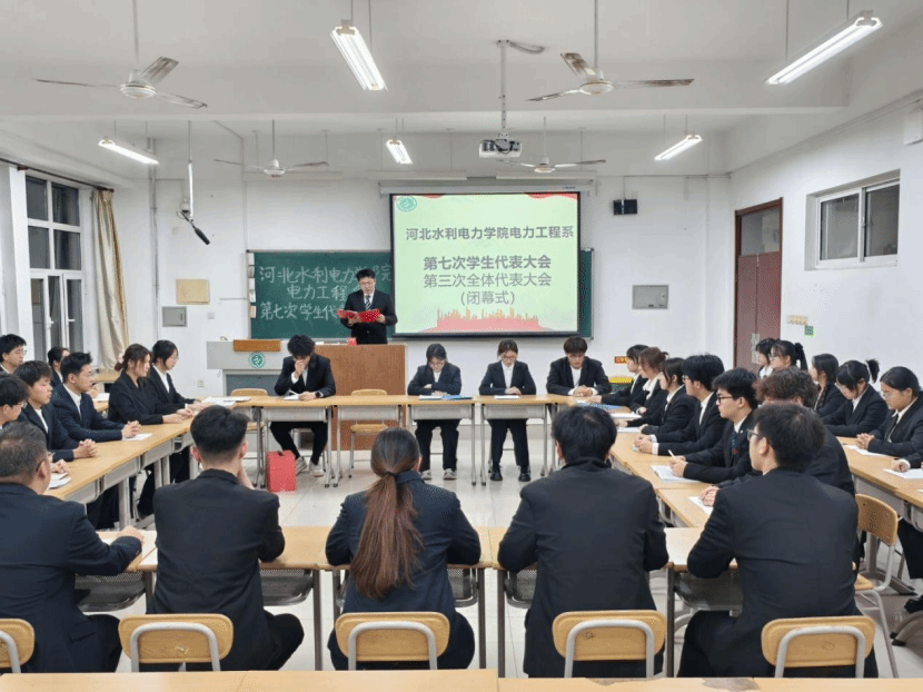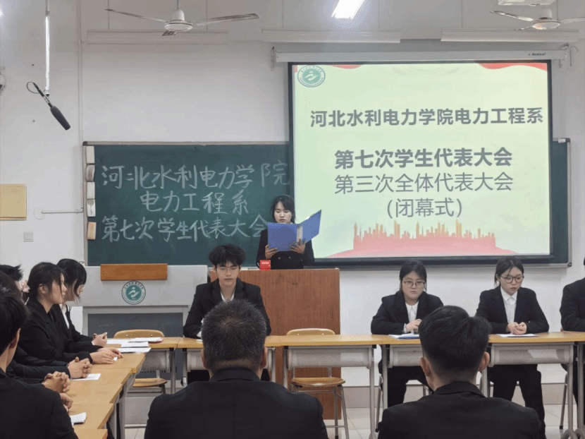 河北水利电力学院电力工程系第七次学生代表大会圆满落幕。本次大会为我系学生工作锚定了发展航向、明确了奋进目标,有力筑牢了学校与广大青年学生之间的沟通桥梁和联系纽带。新一届学生会工作人员将以此次大会为新起点,在担当实干中淬炼本领,在服务奉献中砥砺成长,秉持踔厉奋发、笃行不怠的精神,以更加昂扬的斗志、更加务实的作风投身学习与工作,以新时代青年锐意进取的精神风貌和勇毅前行的蓬勃朝气,奋力开创我系学生工作高质量发展新局面。