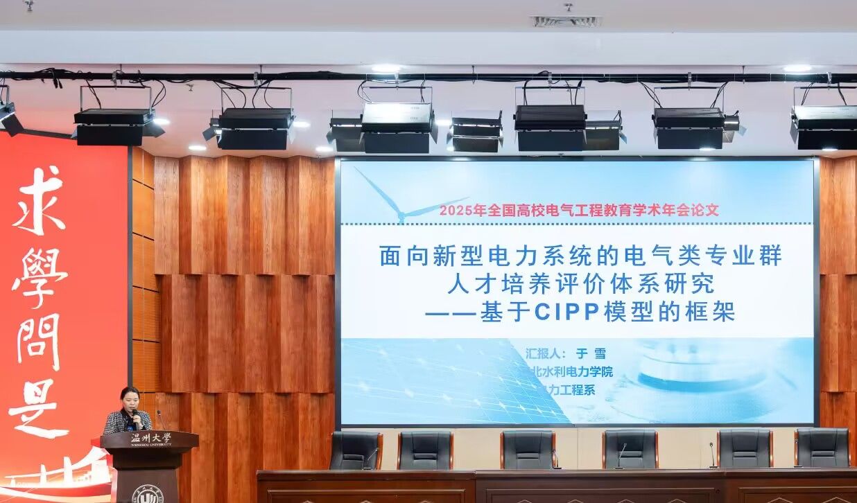 2025年12月18日至21日,2025年全国高校电气工程教育学术年会在浙江温州召开。电力工程系李文才主任、于雪老师等应邀参会,会上,李文才、于雪分别以《数智赋能 高素质应用型人才培养实践》《面向新型电力系统的电气类专业群人才培养评价体系研究——基于CIPP模型的框架》为题作专题报告,向全国同行展示我系在应用型电气类人才培养方面的创新探索。
